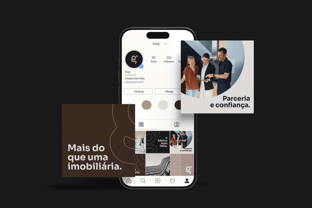 Grag came to us in search of a new name and a brand identity that matched their vision of a modern real estate company. Through a complete branding process — from naming and audience research to brand pillars and content strategy — we built the foundation for a strong visual identity. The result is a brand that feels contemporary, cohesive and aligned with their next phase.
